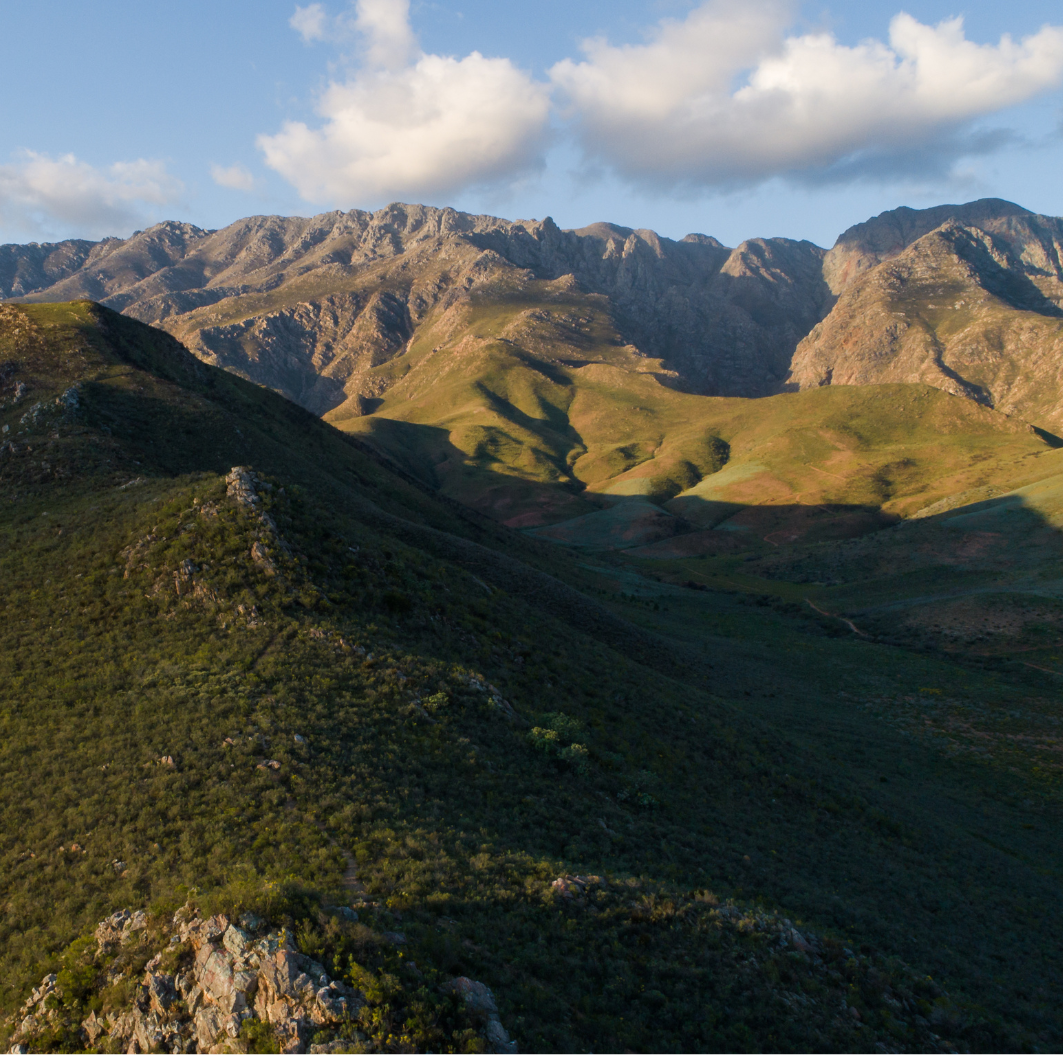Unsere einzigartige Lage, angrenzend an die trockenen Bedingungen der Karoo und profitiert von den kühlen Meeresbrisen der Küstenregionen, beeinflusst unsere Ost-West-Ausrichtung der Weinberge. Diese optimale Ausrichtung, kombiniert mit unserer Philosophie, köstliche Single-Block-Weine zu kreieren, garantiert außergewöhnliche Qualität. Jeder Block, der nicht mehr als sechs Hektar pro Rebsorte umfasst, ermöglicht uns, auf die feinsten Details zu achten.