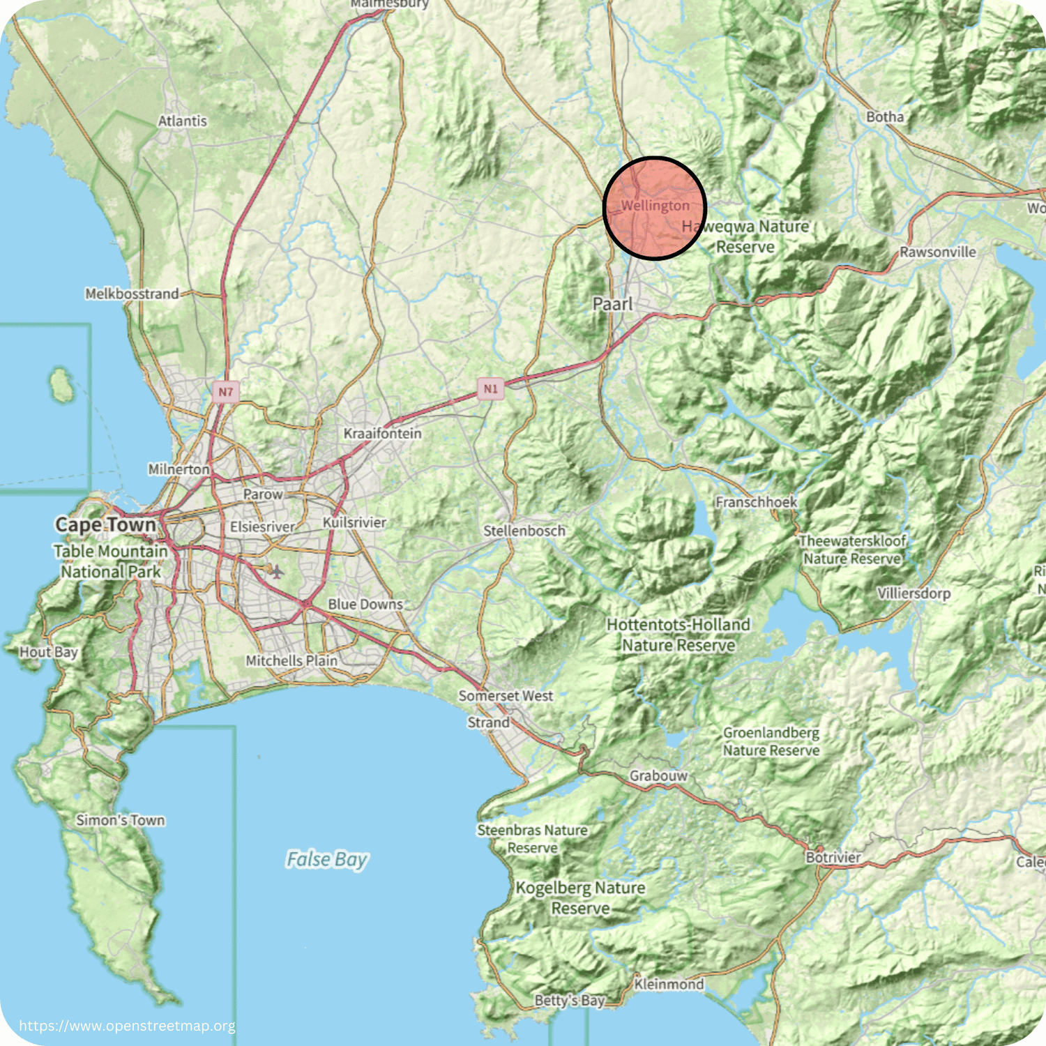 Der Boden in Wellington ist besonders reich an Schiefer und Granit, was den Weinen eine ausgeprägte Mineralität und Komplexität verleiht. Diese Bodenarten ermöglichen eine tiefgehende Wurzelbildung der Reben, was wiederum zur Produktion von besonders robusten und geschmacksintensiven Weinen führt. Wellington ist bekannt für seine hochwertigen Rotweinsorten wie Pinotage und Shiraz, die hier durch die optimalen Wachstumsbedingungen vollmundig und reich an Tanninen sind. Ebenfalls bemerkenswert sind die Weißweine wie Chenin Blanc, die in Wellington eine außergewöhnliche Aromatik und Lebendigkeit entwickeln.